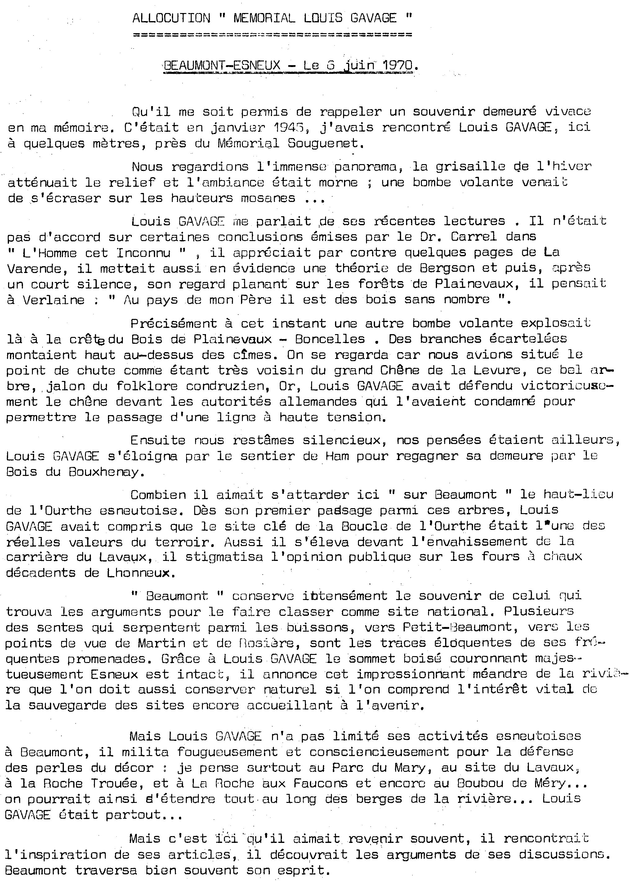 Historique: Louis Gavage (1885-1965), industriel, défenseur acharné des sites de la vallée de l'Ourthe pendant plus de 40 ans. Président fondateur de l'Association pour la Défense de l'Outhe, fondée en 1924.