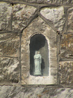 Description: Potale rectangulaire à sommet triangulaire et ouverture en plein cintre, abritant une Vierge à l'enfant protégée par une vitre.