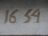 Description: Linteau daté de la porte d'entrée d'une maison en moellons du 17e siècle