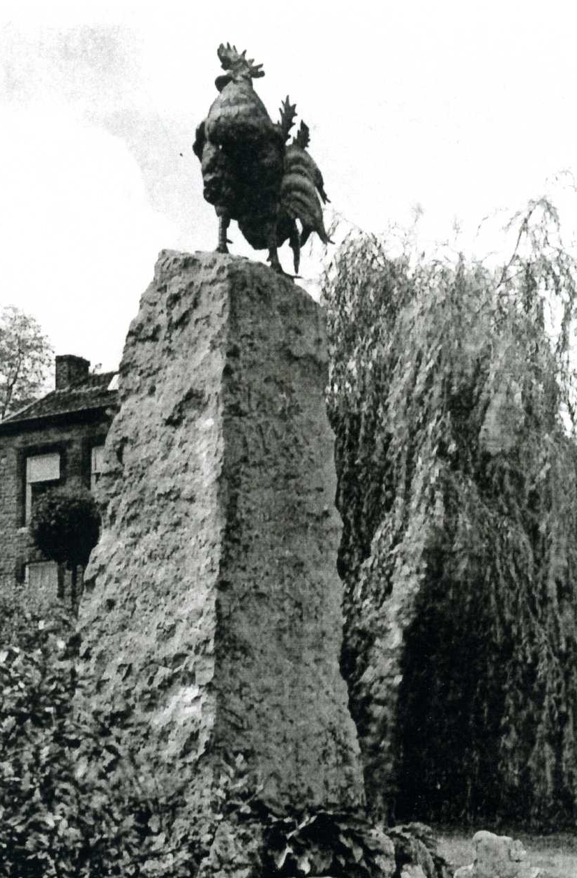 Historique: Le coq initial en bronze, dû à Adelin Salle, a été volé le 29 mai 1999 et remplacé le 27 septembre 2006 par l'actuel coq en petit granit sculpté par le honytois Jacky Jansen. La colonne a été conçue par Auguste Donnay