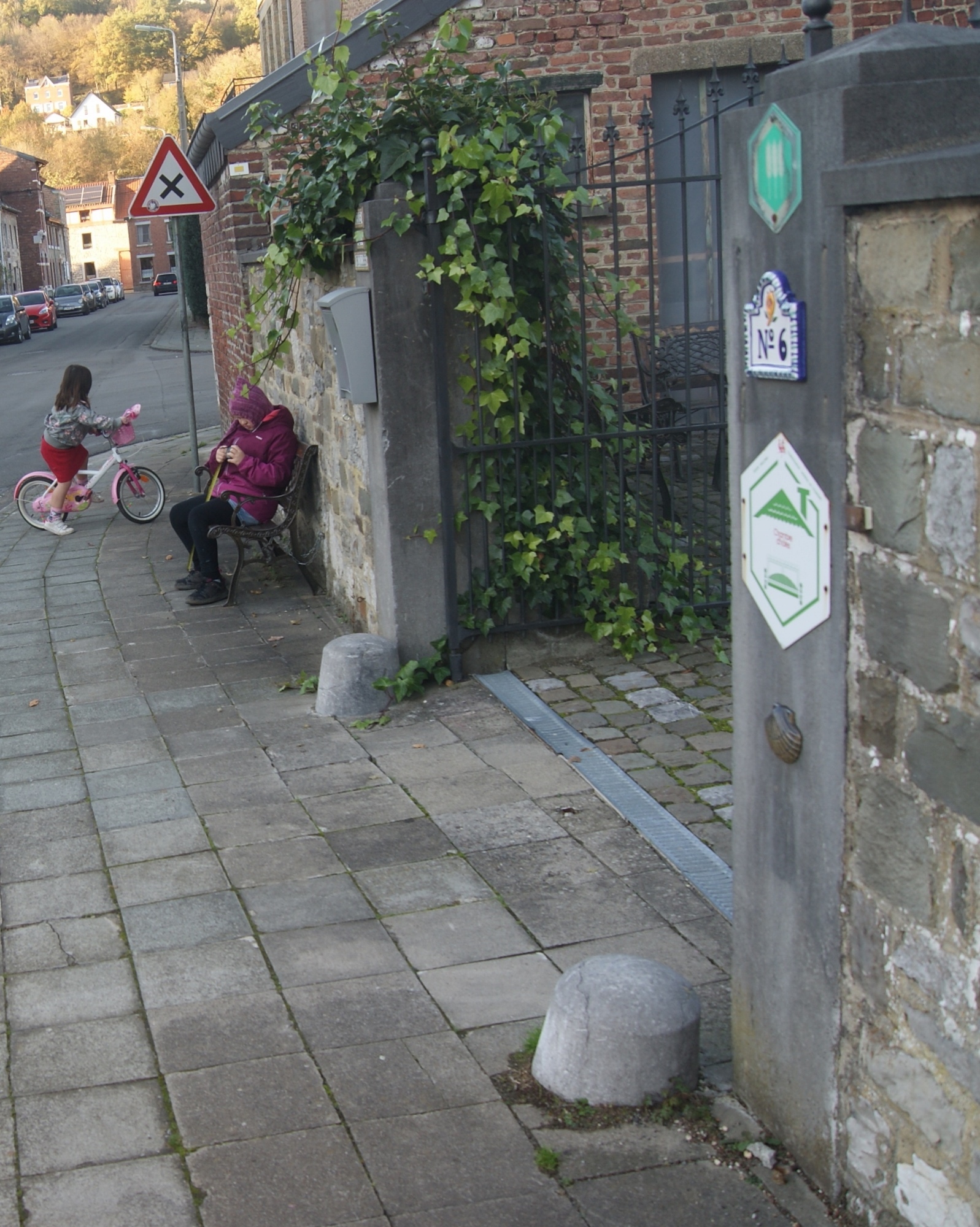 Description: Deux pierres cylindriques servent de chasse-roues, à l'entrée de la cour de l'ancienne maison forte de Hony